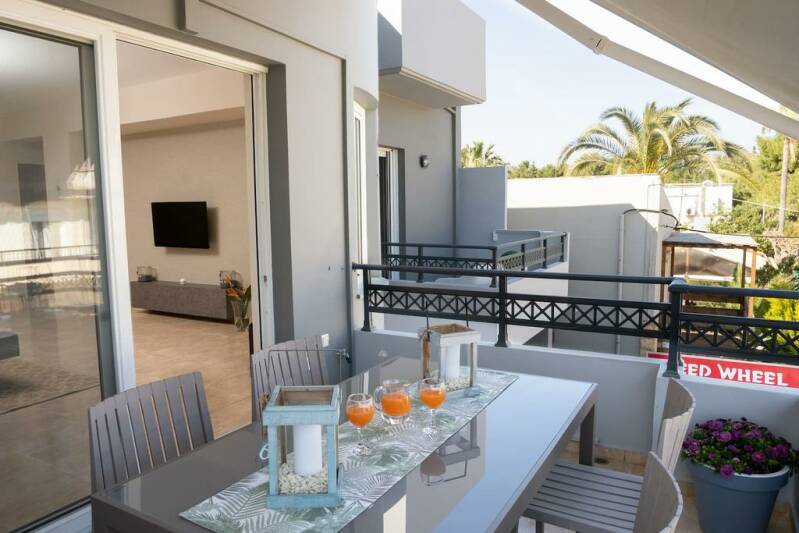 Cretan breeze ligt op 150 meter van het strand en vlakbij het busstation. Er zijn veel mini- / supermarkten en restaurants in de omgeving. Het appartement van 100m2 is in de lente van 2019 radicaal vernieuwd. Het is ontworpen met nieuwe moderne meubels en zeer comfortabele bedden. Het appartement beschikt over 2 slaapkamers, een flatscreen-tv met kabelzenders, een uitgeruste keuken met een vaatwasser en een magnetron. Ook is er een wasmachine en 1 badkamer met een douche. Vanuit Cretan breeze heb je een fraai uitzicht op de bergen vanaf het terras.
