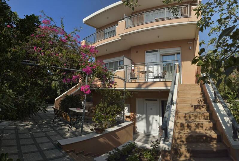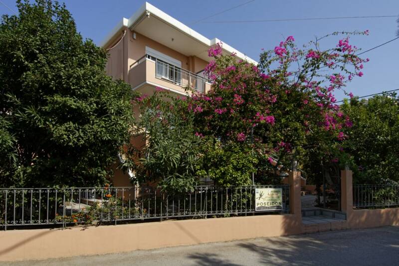 In een rustige zijstraat, aan de rand van het centrum van Paleochora, ligt Poseidon studio's en appartementen. Er zijn zeven studio's en zes appartementen, verdeeld over twee gebouwen en drie verdiepingen. De begane grond is via een trapje bereikbaar. Het is omringd door een tuin en de bougainville is al even kleurrijk als het gebouw zelf. De studio’s zijn geschikt voor 2 personen. De studio's zijn smaakvol en modern ingericht en beschikken over een kitchenette met eethoek, twee eenpersoonsbedden, badkamer met douche en toilet en er is een balkon. In een van de studio's staat een tweepersoonsbed.